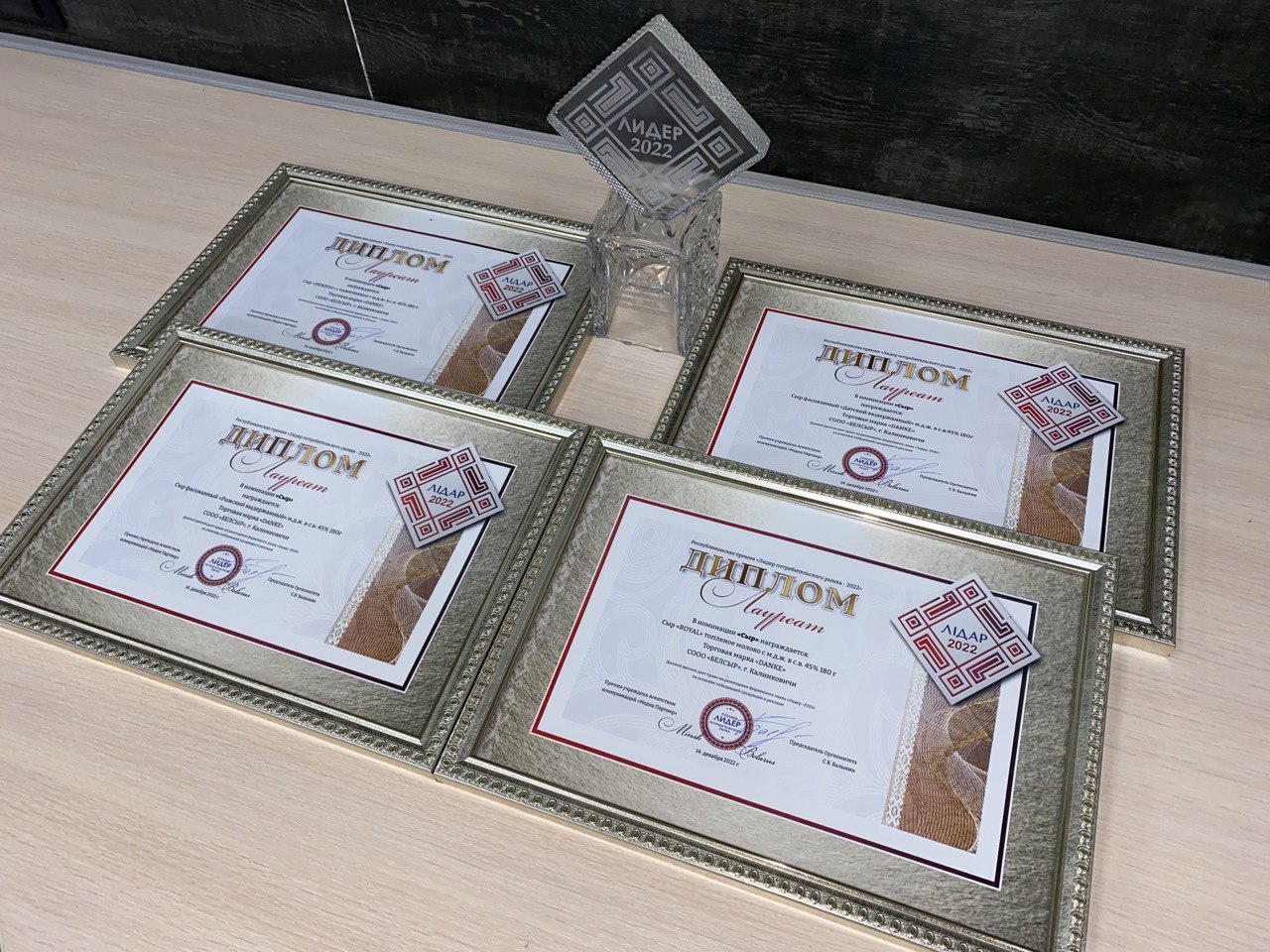 В ходе церемонии СООО «БЕЛСЫР» был четырежды награжден дипломами, а также статуэткой. Лауреатами в номинации «Сыр» была награждена торговая марка «Danke». Дипломом наградили: сыр «ROYAL» топленое молоко, сыр «HERZOG» с пажитником, сыр фасованный «Датский выдержанный» и сыр фасованный «Рижский выдержанный». И, конечно, статуэткой – «Лауреат Республиканской Премии Лидер потребительского рынка –2022».